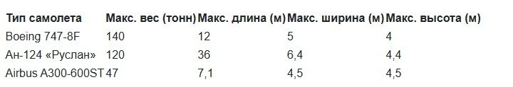 Если груз превышает допустимые параметры, требуется чартерный рейс или разборка на части.